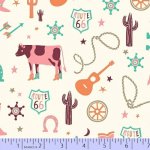 Pop of Color by Timeless Treasures for Quilter's Trek, Stamped Texture. Red, peach, and turquoise on sun and butter. Printed cotton fabric, 42-45in wide.