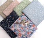 Sakura collection by Artisan Batik for Kaufman. Cherry blossoms in dusty plum, chartreuse, and jade on celedon and rue green. Batik cotton fabric, 42-45in wide.