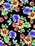 Oh what fun you will have with this fabric! Very happy colors. Perfect fabric for making gifts for a person who loves retro styles. White background. Images about 3 inches